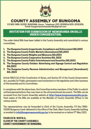 The Bungoma County Public Markets (Amendment) Bill, 2023.